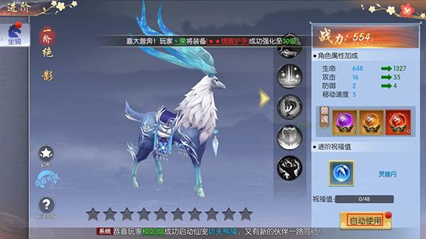 3、游戏内还有炫酷的坐骑可以驯服和骑乘,玩家可以对其进行升级进阶等,提升战力等级。