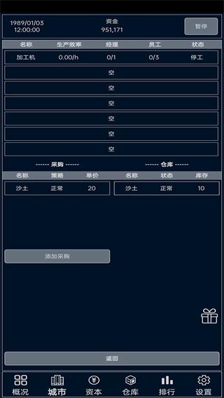 人口:影响产品的销售速度,游戏设定人口到达一定数量,销售价格可以翻倍卖出,但是销售速度缓慢