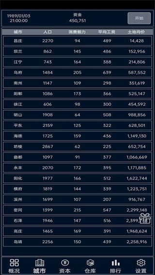 土地均价:每平土地的价格,开局城市最低土地5平,最高10平,08年大都市最高20平,每平价格过亿(在这里我要控诉某游戏开发者,最后一个城所有的地皮我计算了一下,需要7万亿左右才可以把地皮全买下,简直残暴)