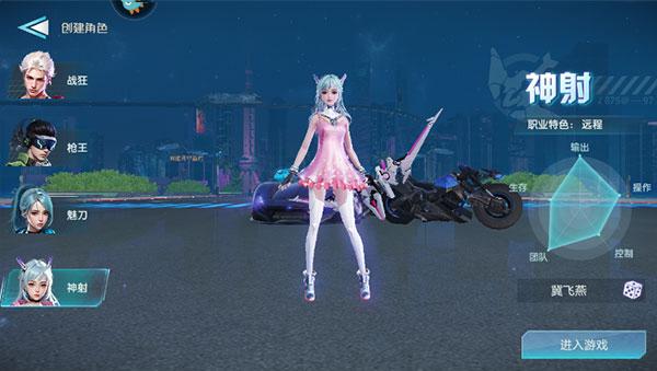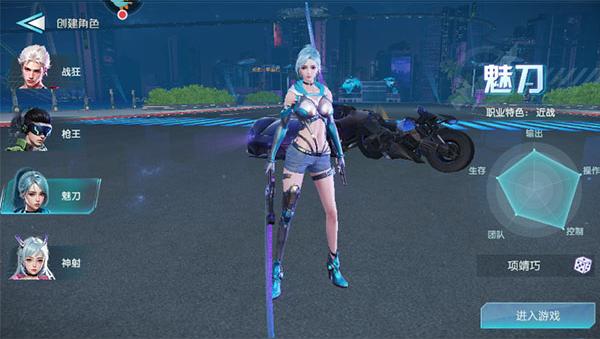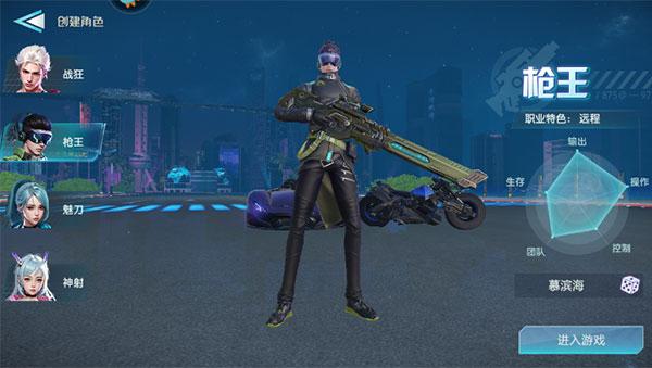 1、开始游戏后,选择创建角色,有战狂、枪王、魅刀、神射四个职业可以选择。