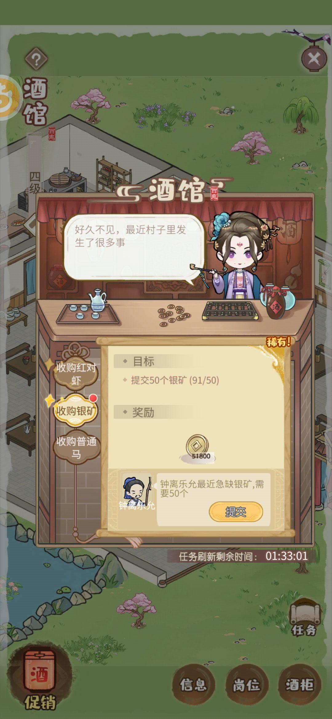 8.关于客栈,大约是十分之一酒馆收益;关于钱庄,功能未完善,前期不需要建设,任务可以无视,给不了几个钱,亏死;关于商行,晚上十一点大概率刷新银子,香,高级招募卷。