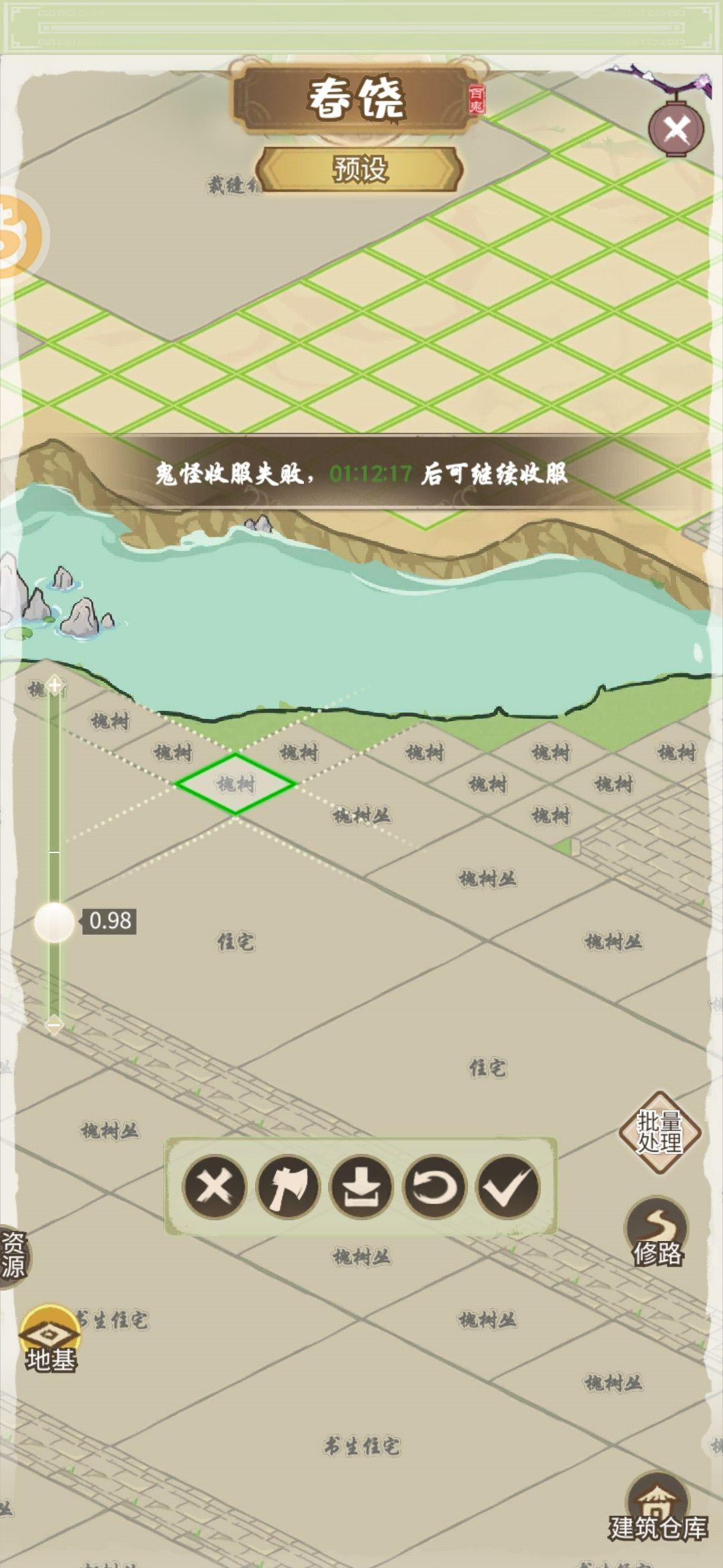 18.捉鬼小妙招,吊死鬼找不到怎么办,让系统给你大体位置,点击布局,点周围的树,他在的树被点到就会出现了。(不知道收回树木会怎么样,但是我碎片不多 没胆量尝试)