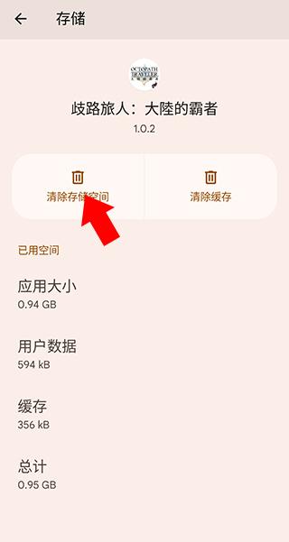 2、进入游戏管理界面后点击左方的清除存储空间按钮