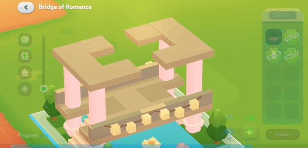 期间,玩家需要手动调整建筑的视角,并寻找一些透视关系完成这个步骤。大部分时间都有明显的提示,等待砖瓦自动填充也是非常有趣的。