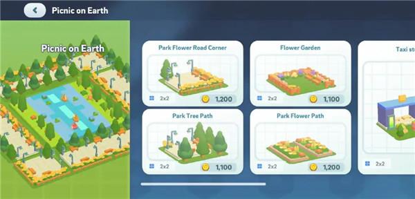 游戏内建筑都有着专属的属性设置,以主题功能展开,比如公园、野餐地点、喷泉凉亭等等