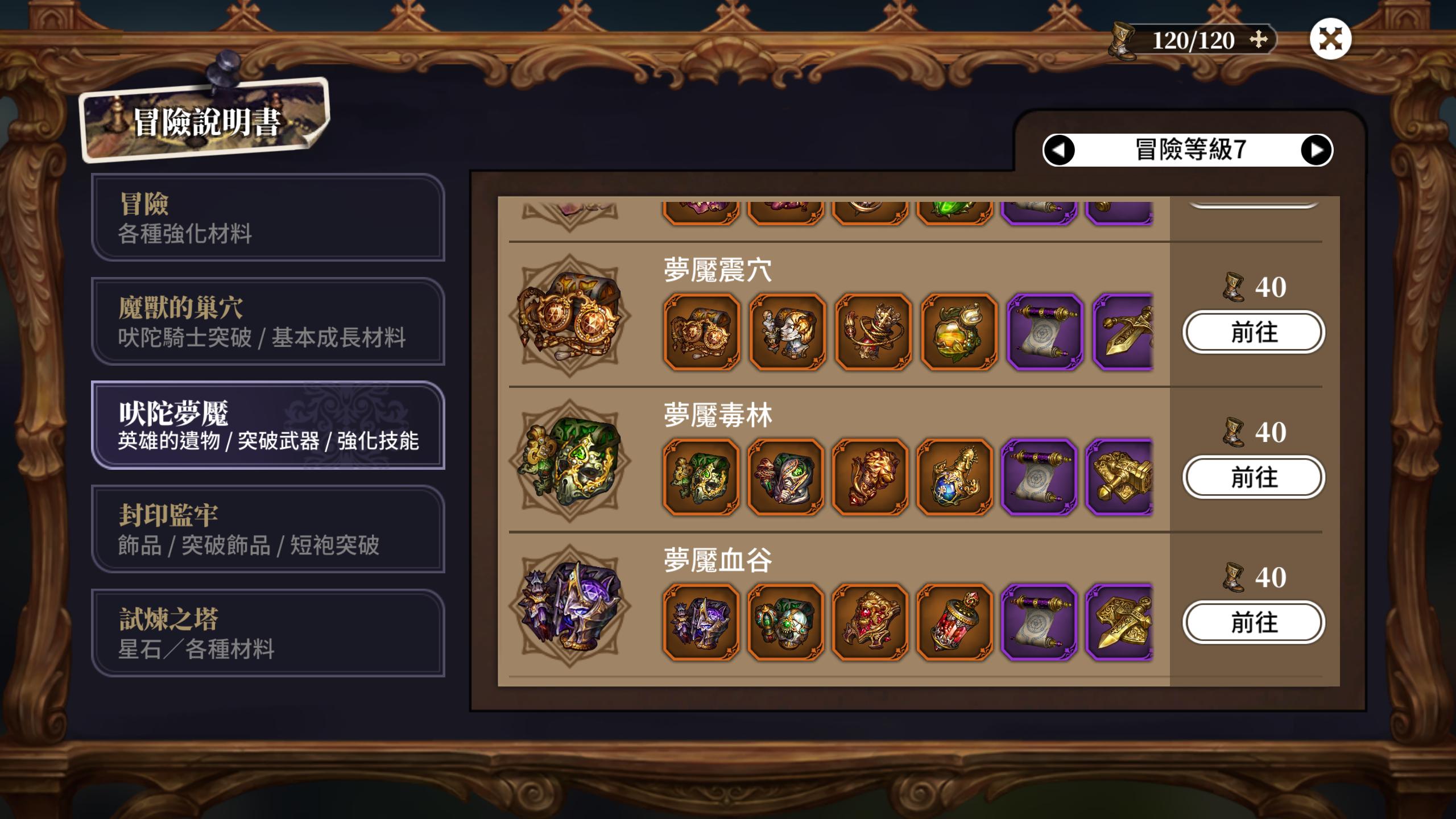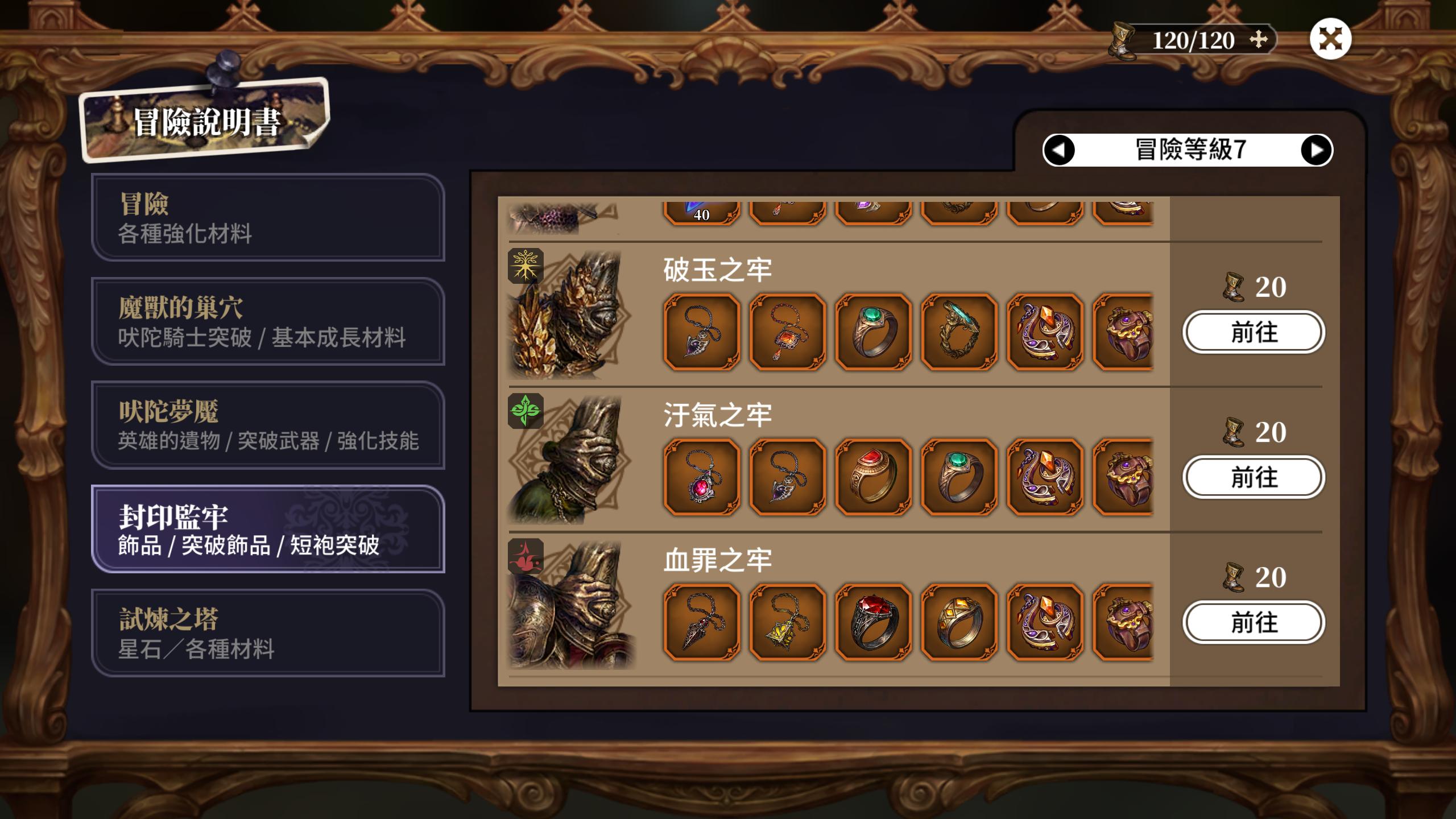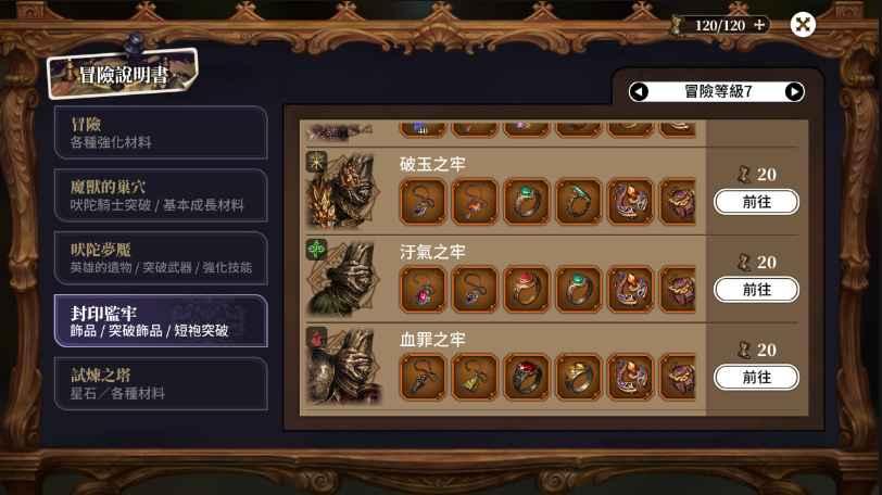 在冒險說明書裡,可以查看包含各種材料的資訊,像是突破材料與飾品,甚至英雄的遺物獲得資訊也都可以找到喔~