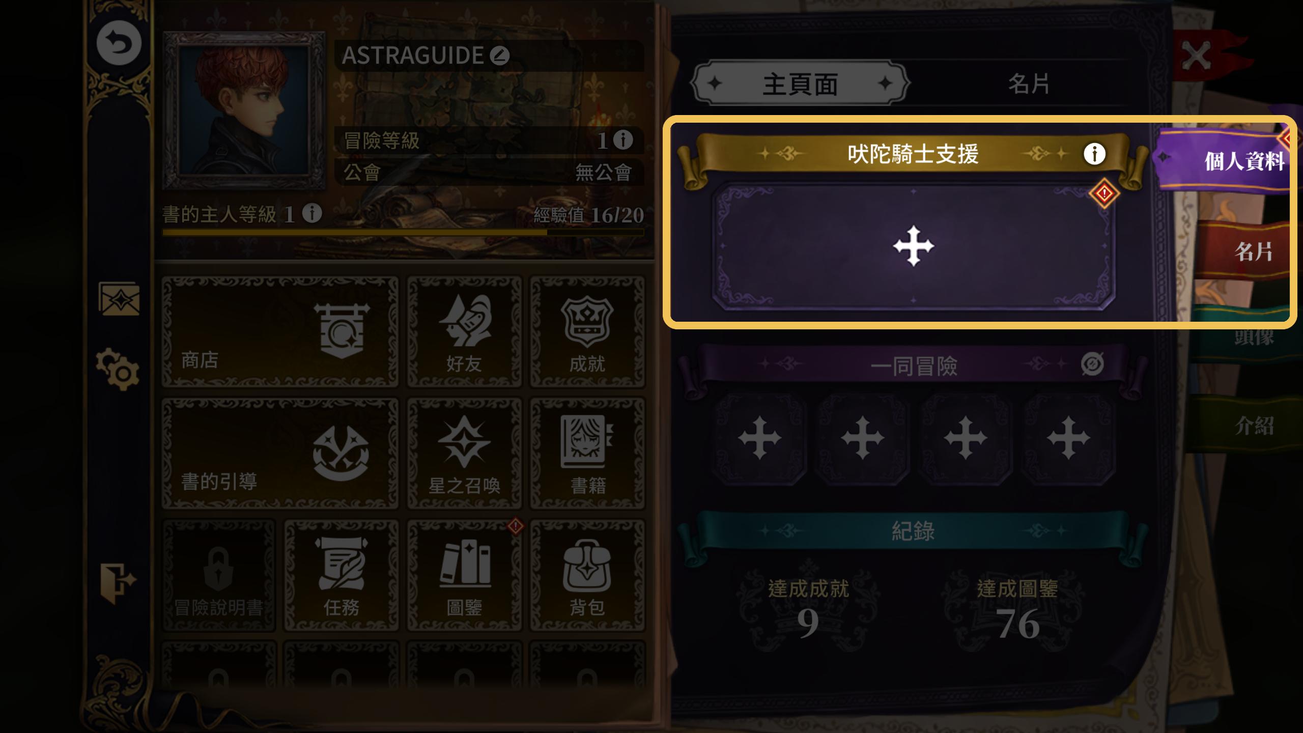 冒險等級是書的主人等級達成一定數值,完成與突破相關任務即會上升。