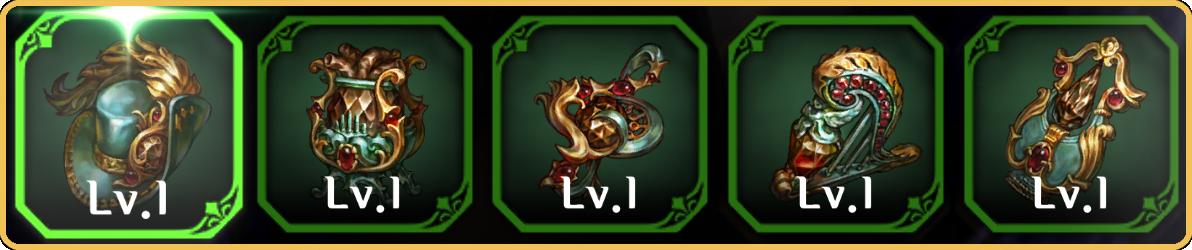遺物種類非常多樣,由5種類所組成的遺物中,穿戴相同套裝的遺物2個或4個以上的話,會發動特別效果。