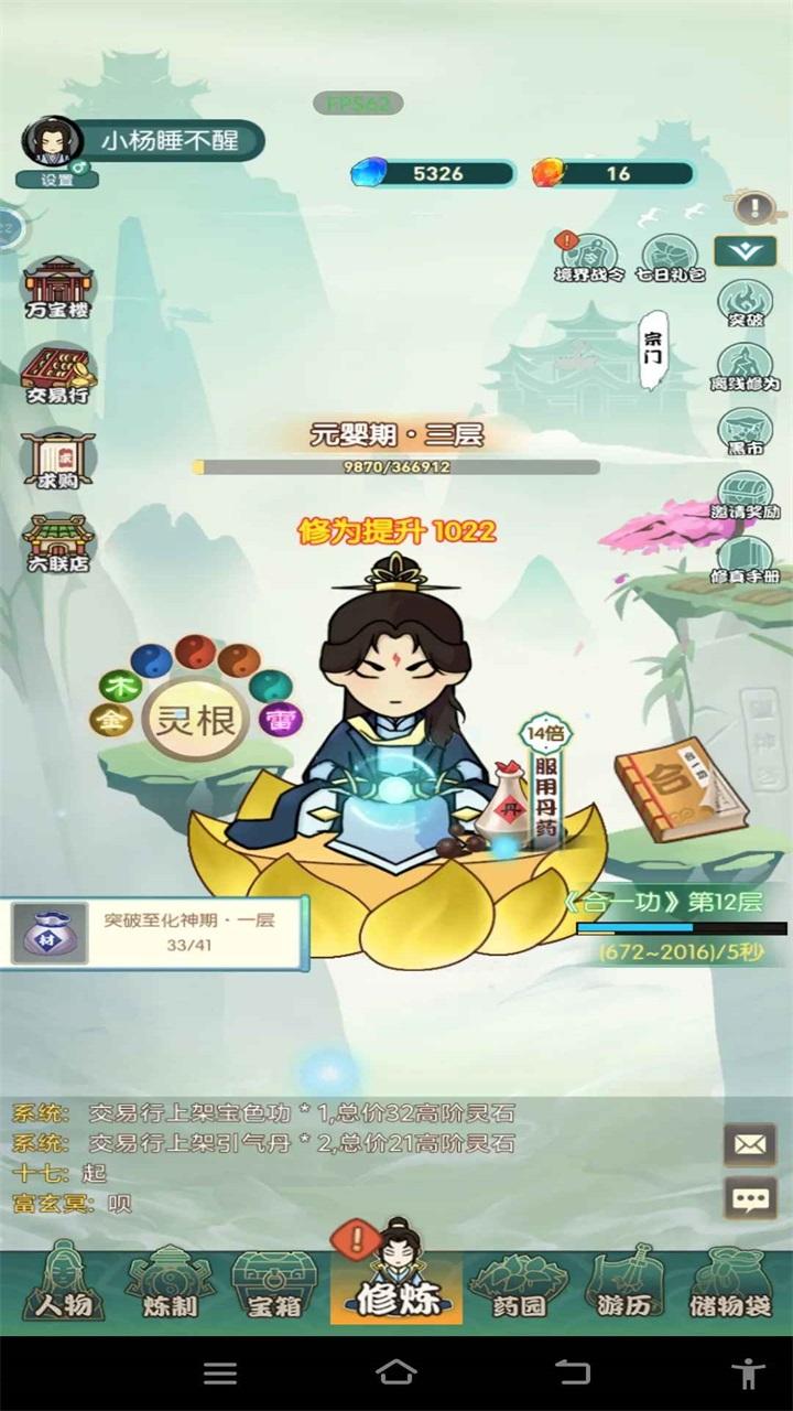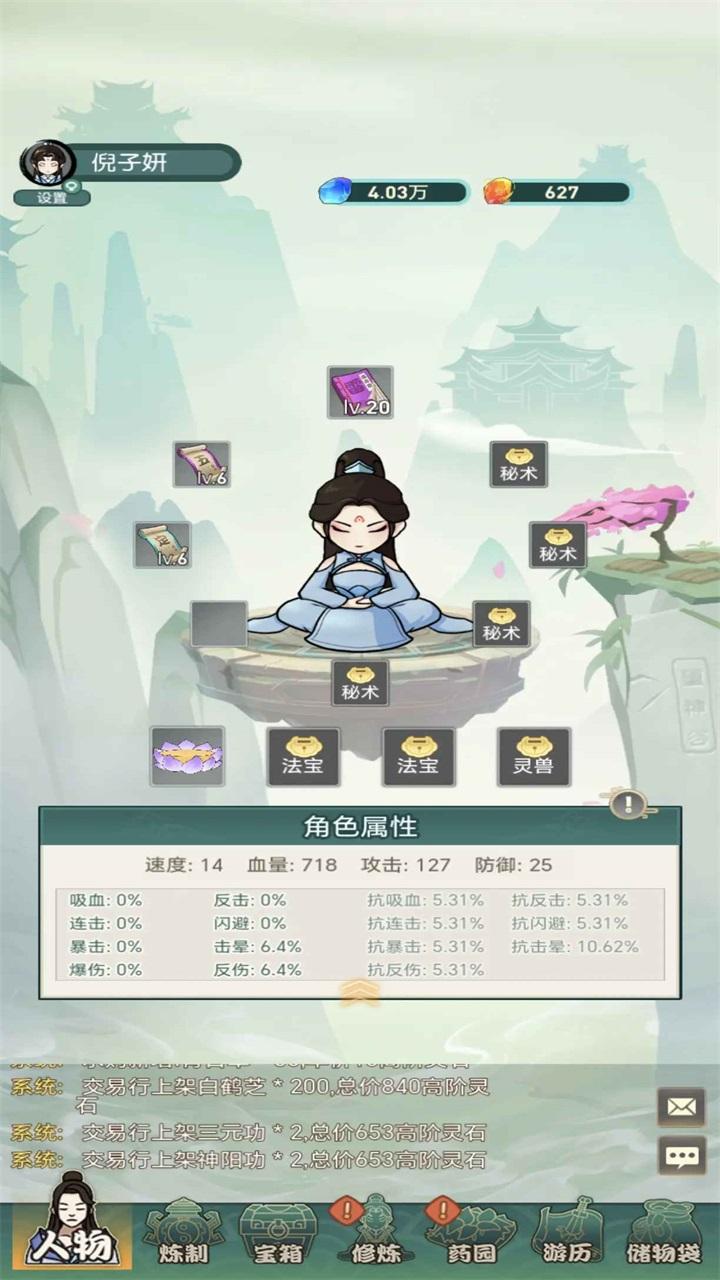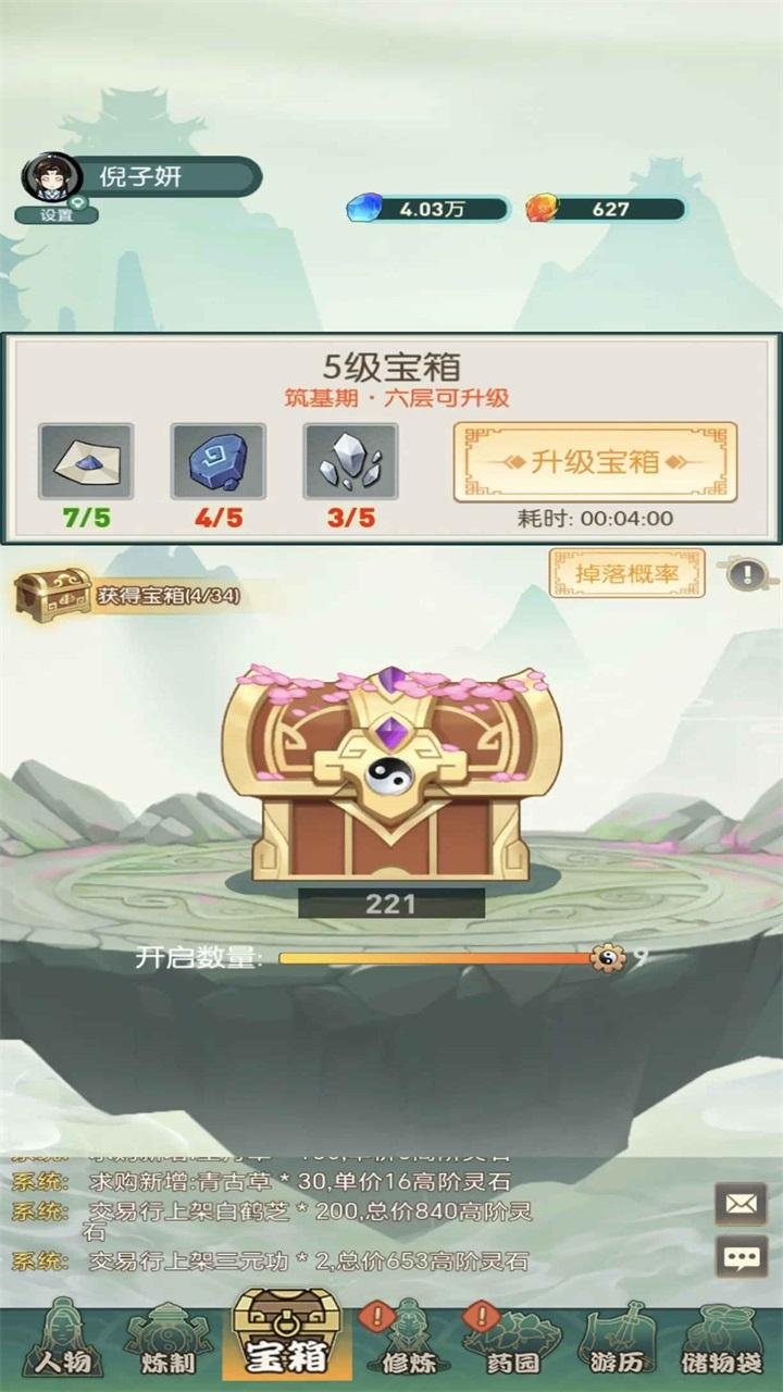 7.交易:游戏内置交易可以把你不需要的功法材料灵药等等通过交易卖给其他玩家赚取高阶灵石。也可以求购自己需要的道具。