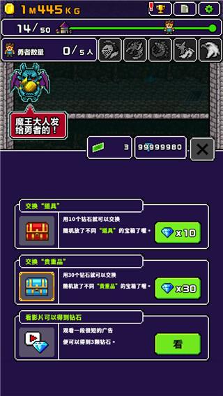 世界的一半手游是一款经典的复古像素风格RPG手游,以勇士冒险为主题,玩家需要在这里勇敢探索冒险!在游戏中,勇士为了获得一半的世界而挑战魔鬼。他们需要不断提高自己的战力,聚集伙伴的力量,运用他们去打败狡猾的魔鬼。这里有好看的立绘,轻快悦耳的音乐,说好的分一半世界呢?魔王不要太过分,玩家也是有脾气的。勇士一直在等待着你开启新的篇章!