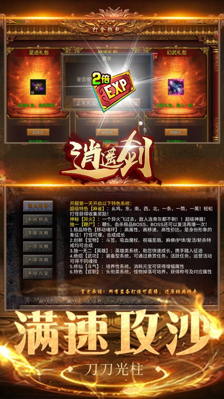 逍遥剑是2024全新推出的一款传奇手游,游戏有着高攻速、高爆率的特点,同时加入了麻雀系统、异火系统,注重操作手感,拥有高爽快的战斗体验,还有着丰富的社交系统,在这里你可以与其他玩家组队或独自闯荡,挑战各种强大的怪物和Boss。