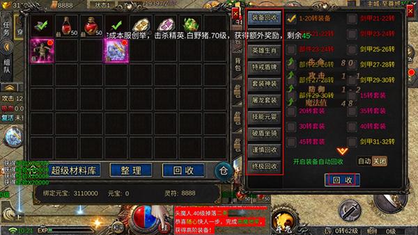 1、玩家进入游戏后就可以领取开局福利,享受顶级攻速,高爆概率,开始传奇打金之旅。