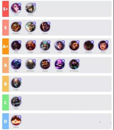 1、T0梯队:盲僧、螳螂2、T1梯队:雪人、寡妇、赵信、奥拉夫、锐雯