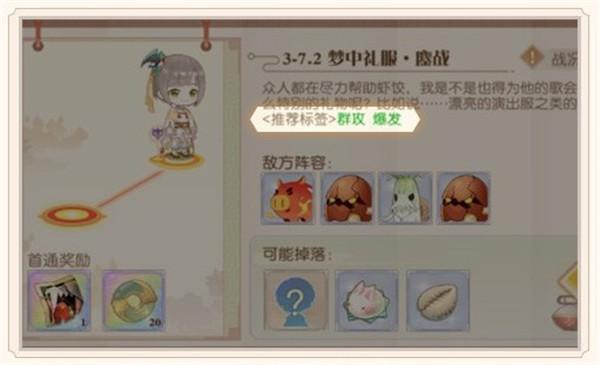 4.我们可以看到关卡3-7推荐标签为<群攻><爆发>,那么我们可以选择有这两种标签的食魂,如:一品锅.鸡茸金丝笋.驴打滚.松鼠鳜鱼等