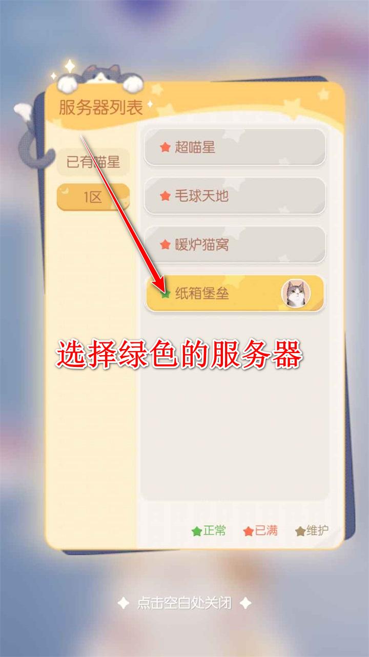 2.这个时候我们只需要返回到服务器登录界面选择绿色的服务器就可以正常登录不会卡在登录界面了。