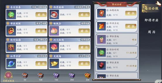 角色等级跟各种活动的开启关联,前期等级提升的越快,获取的资源越多,战力越高。这里介绍获取经验最多的两个活动“蟠桃会”、“每日任务”。