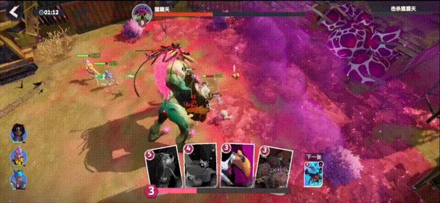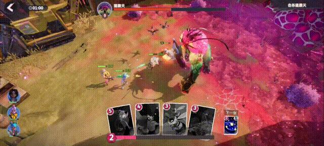 游戏会随机刷新下一张卡牌,再搭配玩家不同的使用策略,使场上情况更加复杂。玩家除了要注意大招释放的范围和节奏以外,还要注意BOSS的攻击和自己的位置,防止受伤,含有一定的即时性操作,丰富了PVE战斗体验。