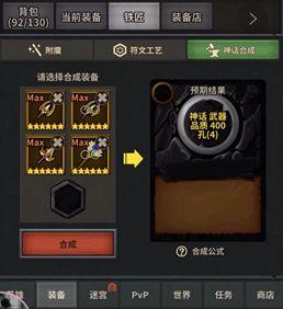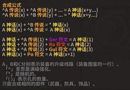装备可以二合一,三合一,或者四合一。合成神话会有品质提升,公式如下: