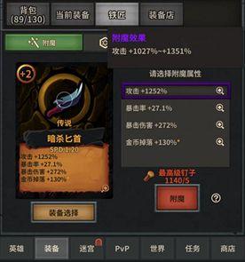 装备有两种获得途径:推图掉落,开箱子。推图掉落的装备品质=掉落时层数/10,开箱子的装备品质随机。品质越高,装备属性越好。每一件装备的属性由词条和数值构成。每一件装备的词条由固定词条和随机词条构成。随机词条可以通过附魔切换成其他词条,固定词条不可。