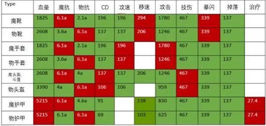 所以,从表中我们不难看出,如果是坦克位置的英雄,物理护甲(板甲)的收益是最高的,它拥有最高的物抗,魔抗以及血量。如果是输出型英雄,魔抗手套拥有最高的输出属性。