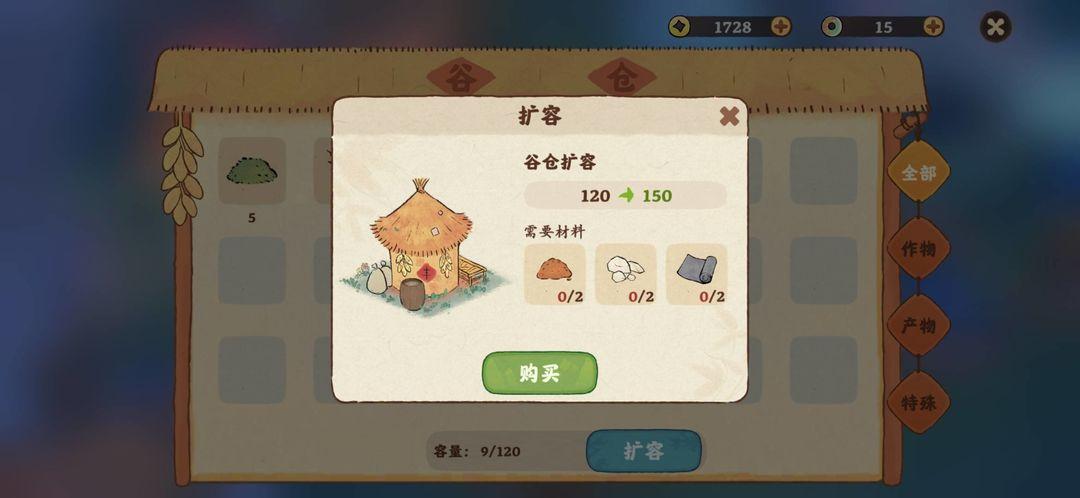 杂货铺的格子可以多开一些,会有随机作物可用少量铜币购买,也有需要长时间制作的产品,相对订单而言会比较高,更多是用来解决燃眉之急