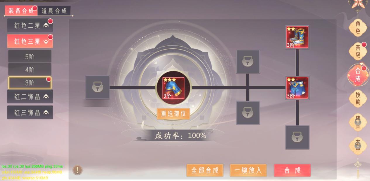 如果妖主们获得了当前适合自己但是低星的装备,可以到背包里合成高星装备。