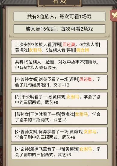 2. 新增玩法"英杰大会",每隔一段时间固定开启,可安排族内16岁以上且文武属性符合标准的成员参与,共分新秀、侠士、大侠、豪侠、宗师5个等级的场次,在大会中排名靠前的成员将有机会获得相应称号并提高家族势力