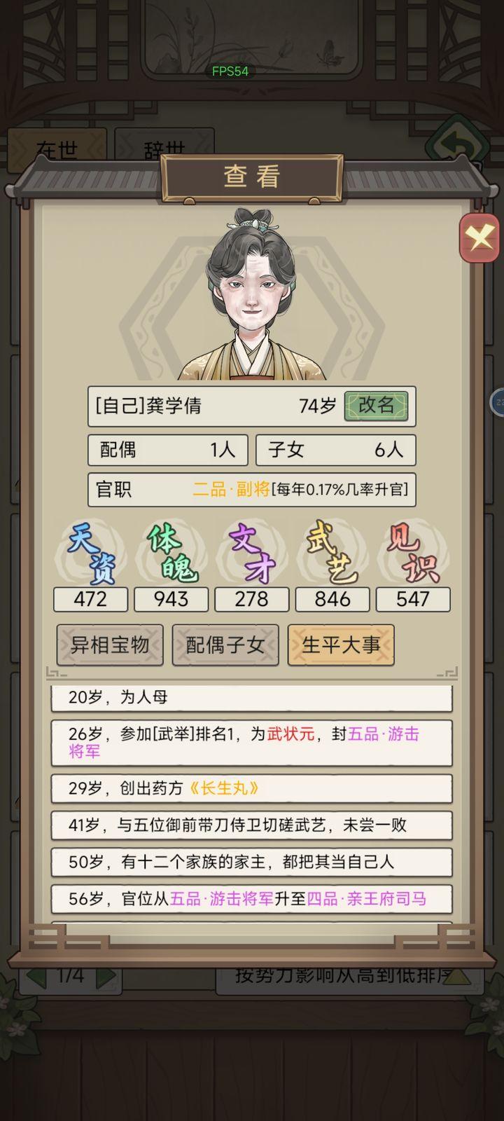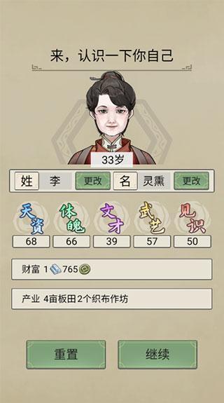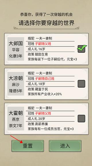 1.打开游戏后,开局你可以选择自己的家世背景,可以一直重置来刷到你想要的属性。