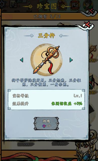 关于珍宝的优先解锁扫地僧建议就是先解锁:气运莲与三分杵把经济收益整体先提高一个阶层,后续升级道场也是十分有帮助的!