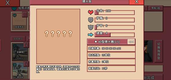 详细:虽然高昂的钻石价格可能会让各位萌新望而却步,但我相信,只要用过指挥官技能,喷火兵班组的人便会喜欢上喷火兵。30×12的总伤足够让他在1-2轮内摧毁任何阵地,四的移动速度与20单位的射程让它便于拉扯,配上医疗兵,什么阵地在他面前都土鸡瓦狗一般。