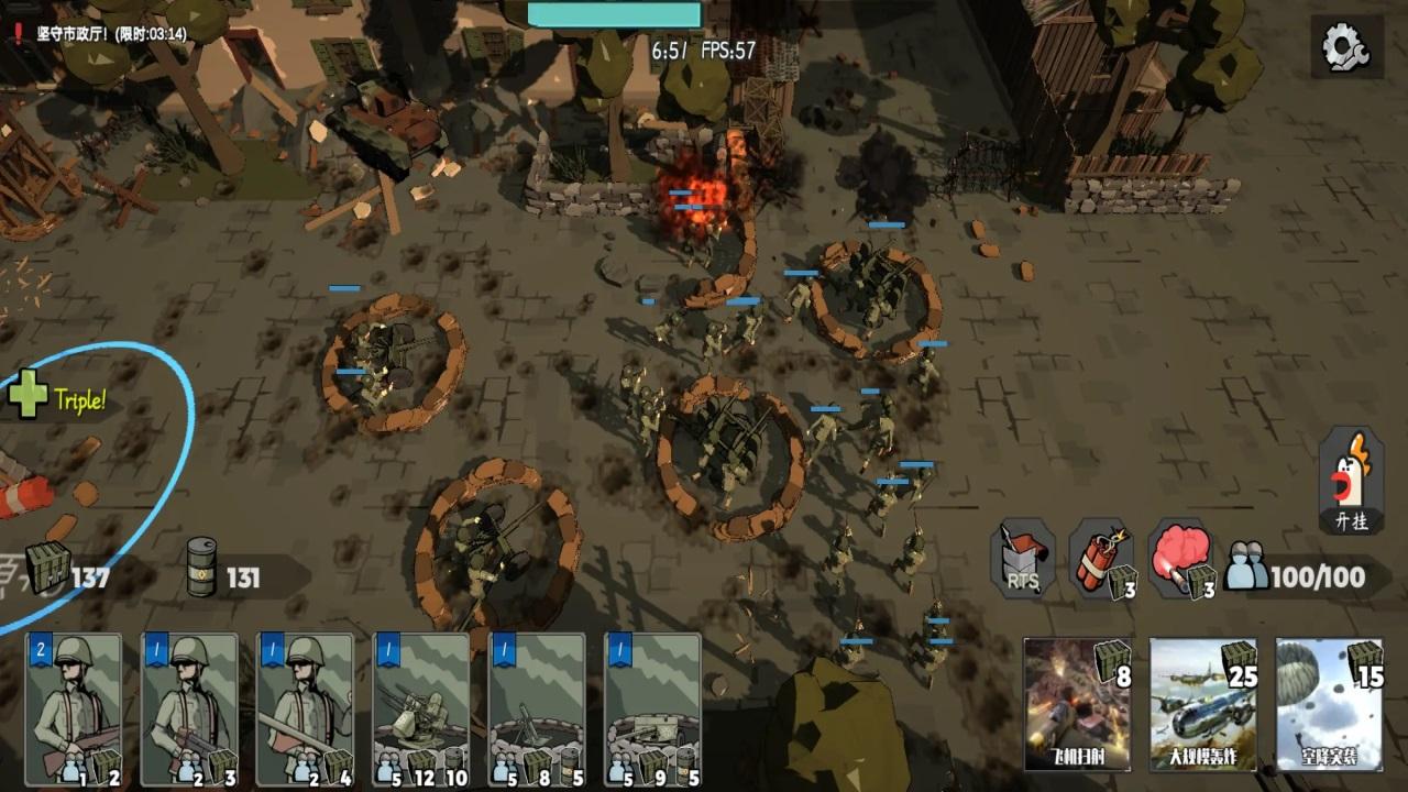 但摸上两把就发现还挺简单。不要模仿伞兵和大轰炸,那只是我试图反攻拿到那个+16的资源点。整体难度还行,只要会运营多整点阵地就好说。虎豹就拿57干掉就好