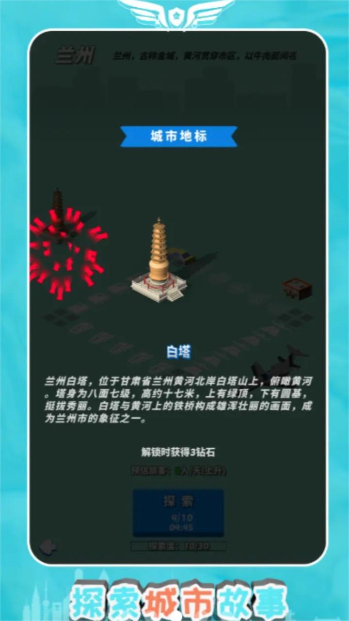 投资城市解锁上百个城市地标,竖屏放置,不肝不氪,方便摸鱼。