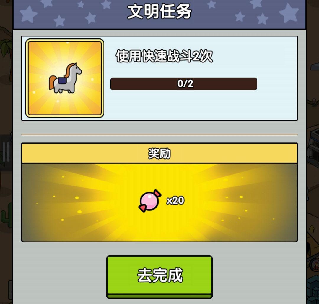 这里最容易无视的是快速战斗3次 因为这个任务实打实需要300糖果 一关出现3次 就是900糖果 真是 实打实硬卡 所以大家的糖果尽量存点留着过这个任务 这个任务一般配合知识点任务 因为快速一次 可以随便把知识点任务完成