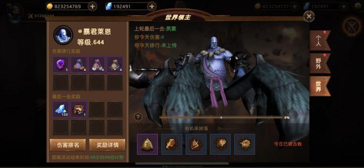 说明:世界领主所有玩家一同击杀,每日可挑战3次,被击败后,次日刷新。按照对世界领主的伤害排名,在领主被击败后结算排名奖励。对世界领主完成最后一击的玩家,可以获得额外奖励。每次挑战均会获得精炼石、坐骑装备碎片等珍稀道具奖励。