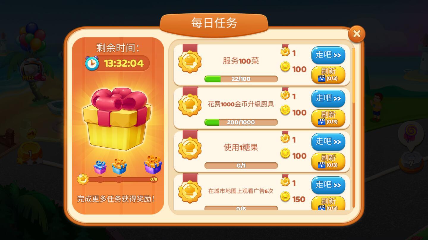 点击播放超过1000点的水平和煮吨的菜肴,使客户感到满意
