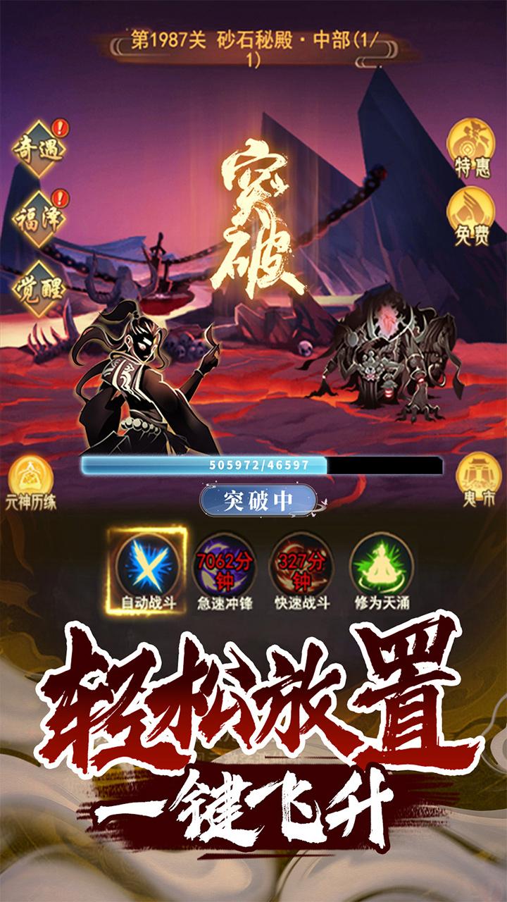 四、【高效的挂机修仙】 离线战斗,超高收益,每次上线都有新的提升!更有随机任务、奇遇气运,修仙路上轻松愉快!