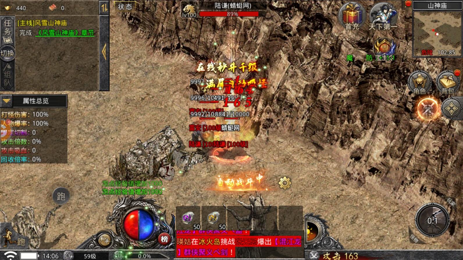 BOSS:8888的法神非常重要,可以在游戏初期打BOSS,最厉害的BOSS就是让法神挡住BOSS,然后让法神在外面看不见BOSS,而道士可以用毒药不断的下毒,运气好的话能掉6-8转的东西。