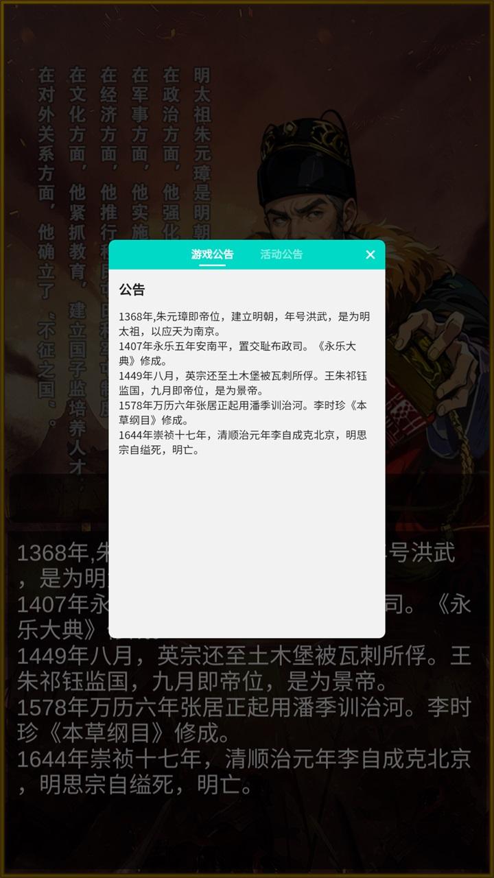 历史背景:游戏以明朝时代为背景,玩家可以在游戏中体验到长城、紫禁城等具有代表性的明朝建筑,感受到历史的魅力。