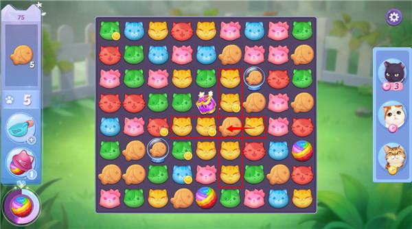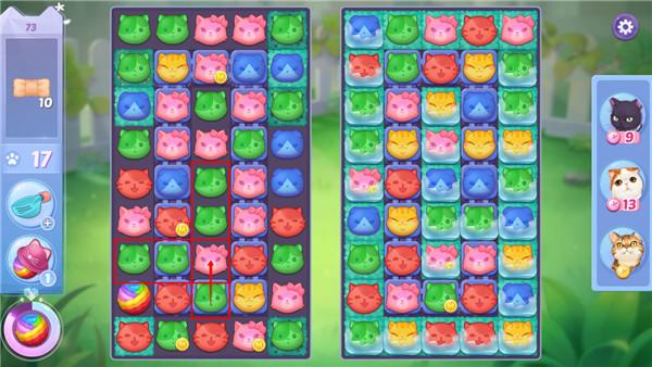 2、休闲解压的消除玩法内容,在养猫的同时放松自己的身心;