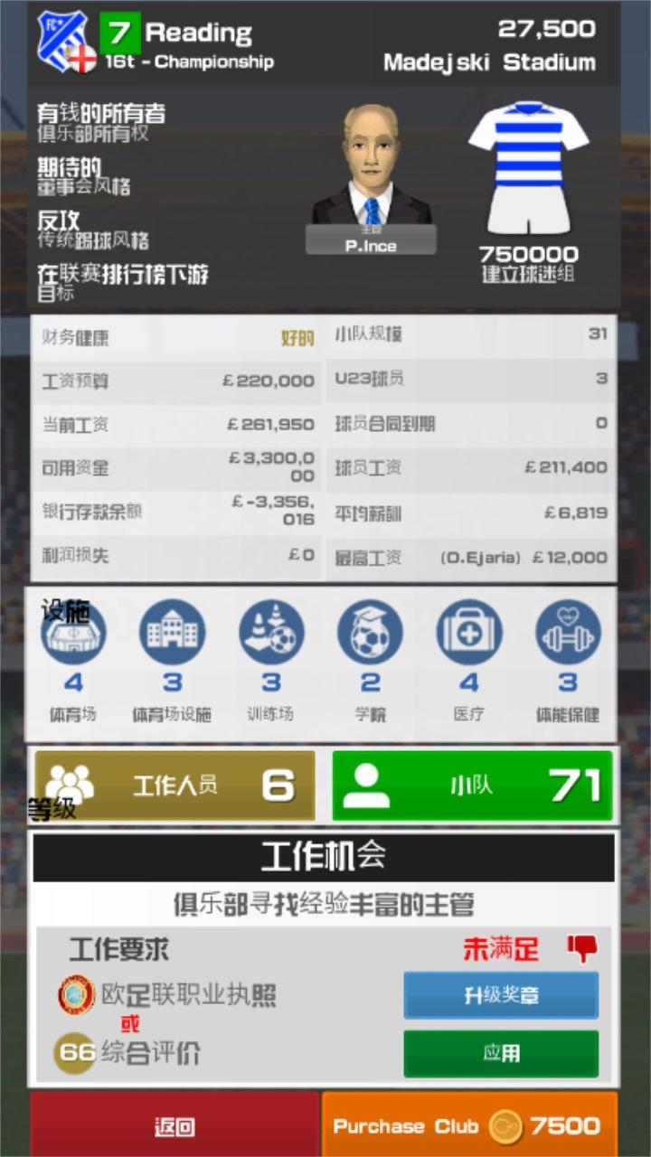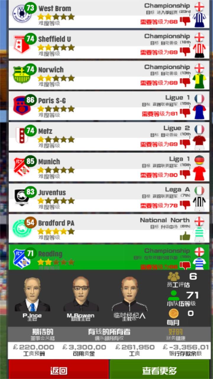 1、提高您的声望,加入到更棒的工作岗位,您慢慢积攒声望,累积金币,到某一天就能够进行收购,拥有您自己的俱乐部,成为董事长。