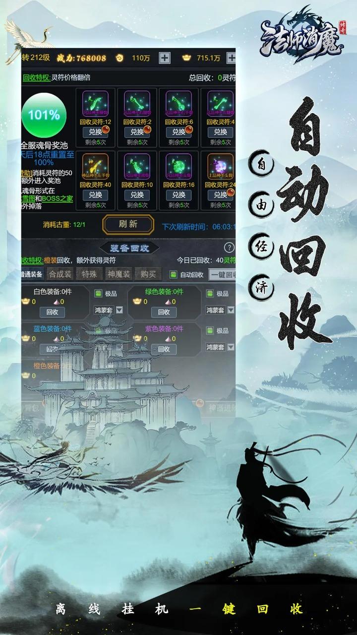 法师消魔是一款竖版的文字类型挂机传奇手游,采用复古冰雪版本的单职业传奇为玩法,轻松挂机不肝不氪,各种珍稀装备都能轻松掉落,装备还能自动回收,解放您的双手,超多经典传奇玩法等您来体验,不要错过哦。