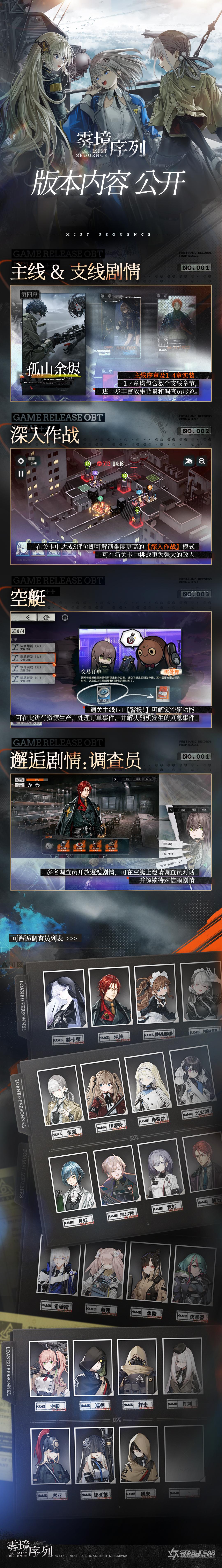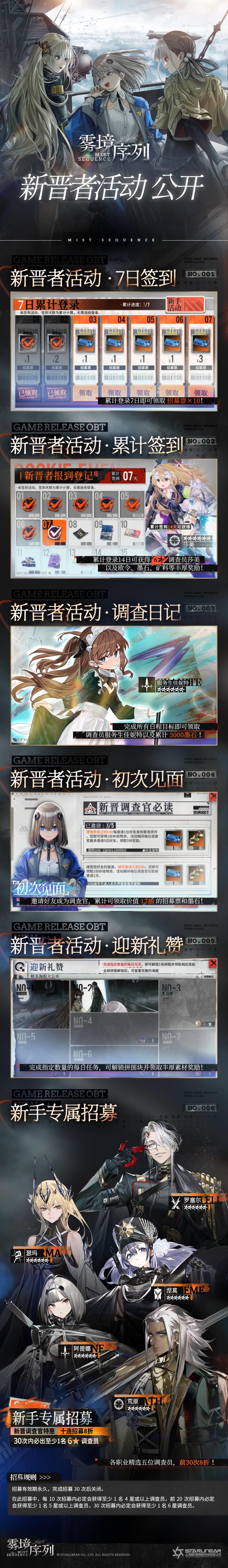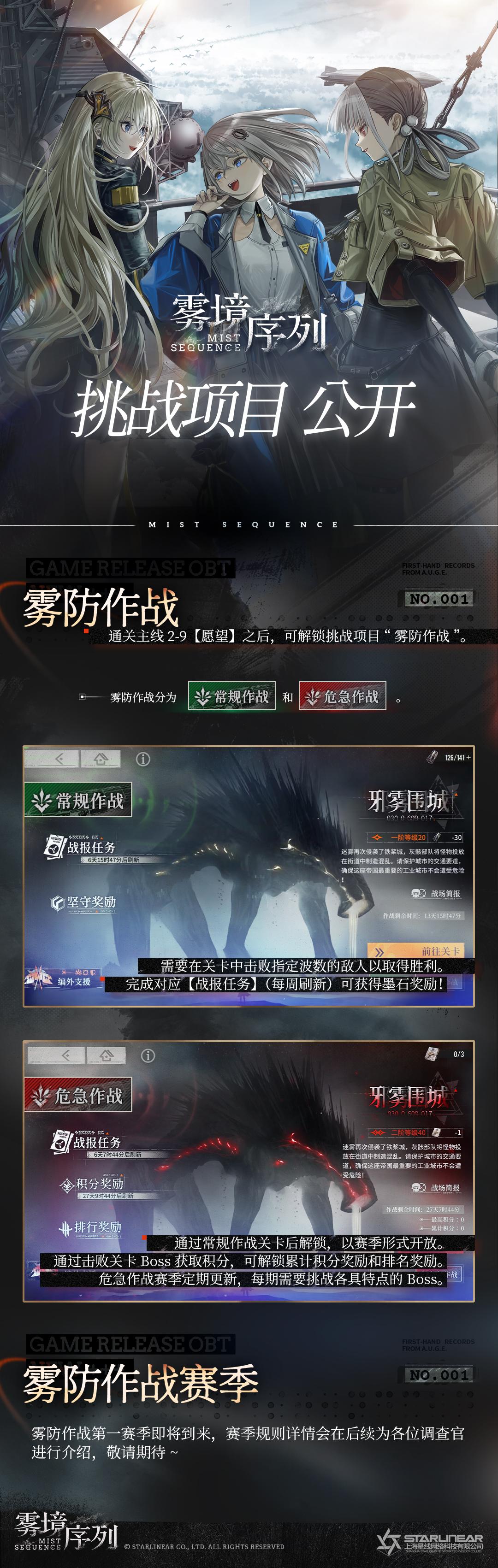 《雾境序列》公测将于2023年11月22日正式开启。当前,调查团已完成对公测【版本内容】、【新晋者活动】及【挑战项目】的整理,详情请在下方长图进行查看。期待与您的正式见面~