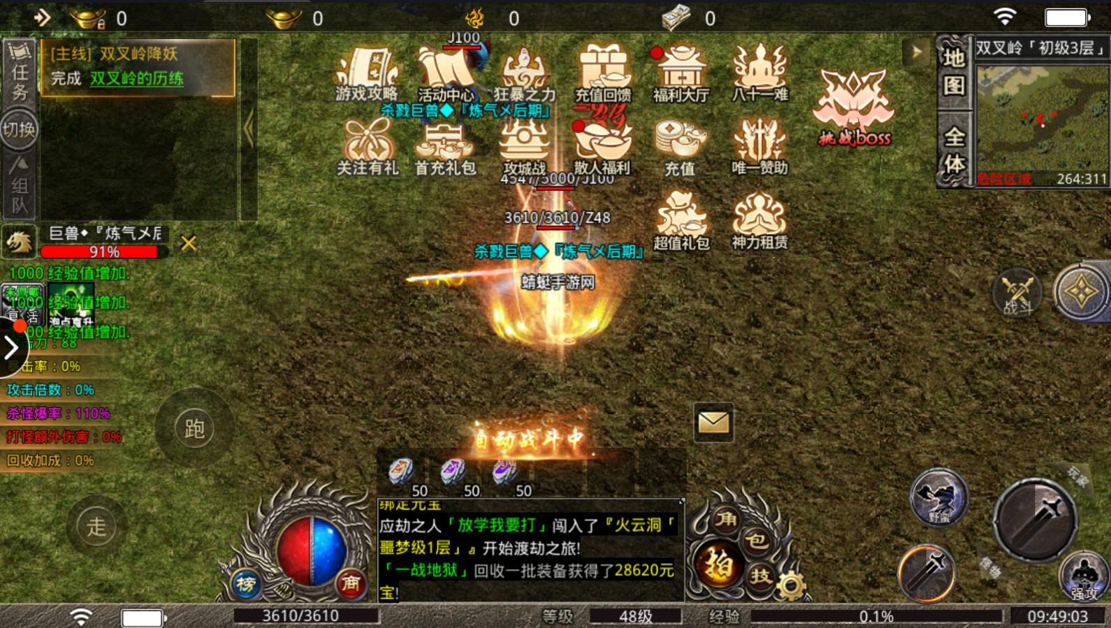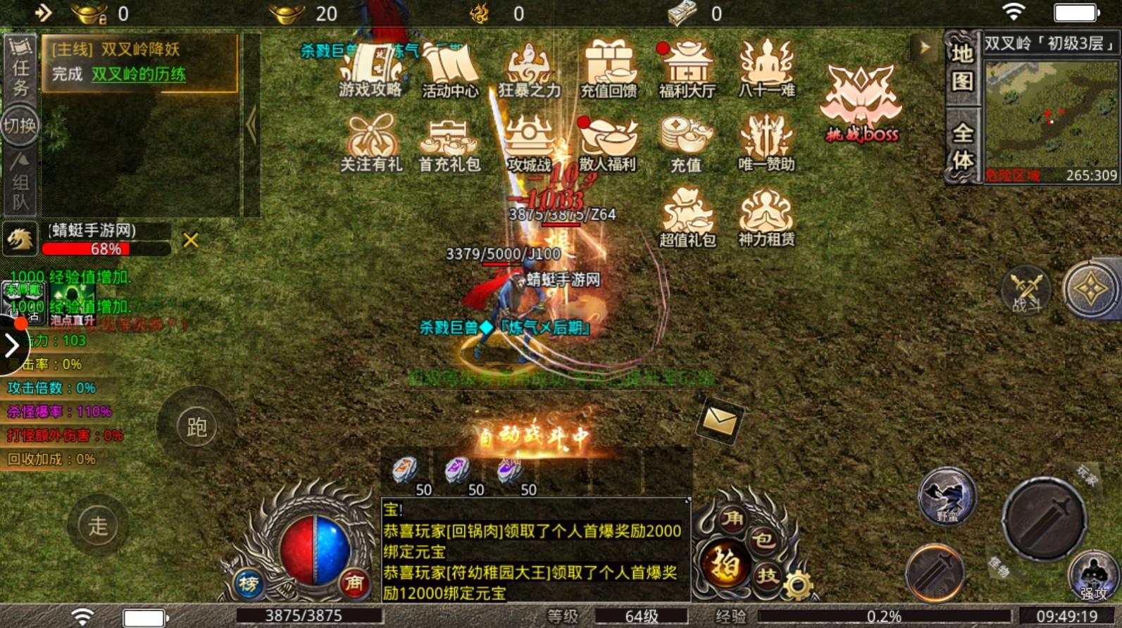 10、降妖录:达到指定限制条件即可进入地图,杀死不同类型boss即可获得对应奖励。