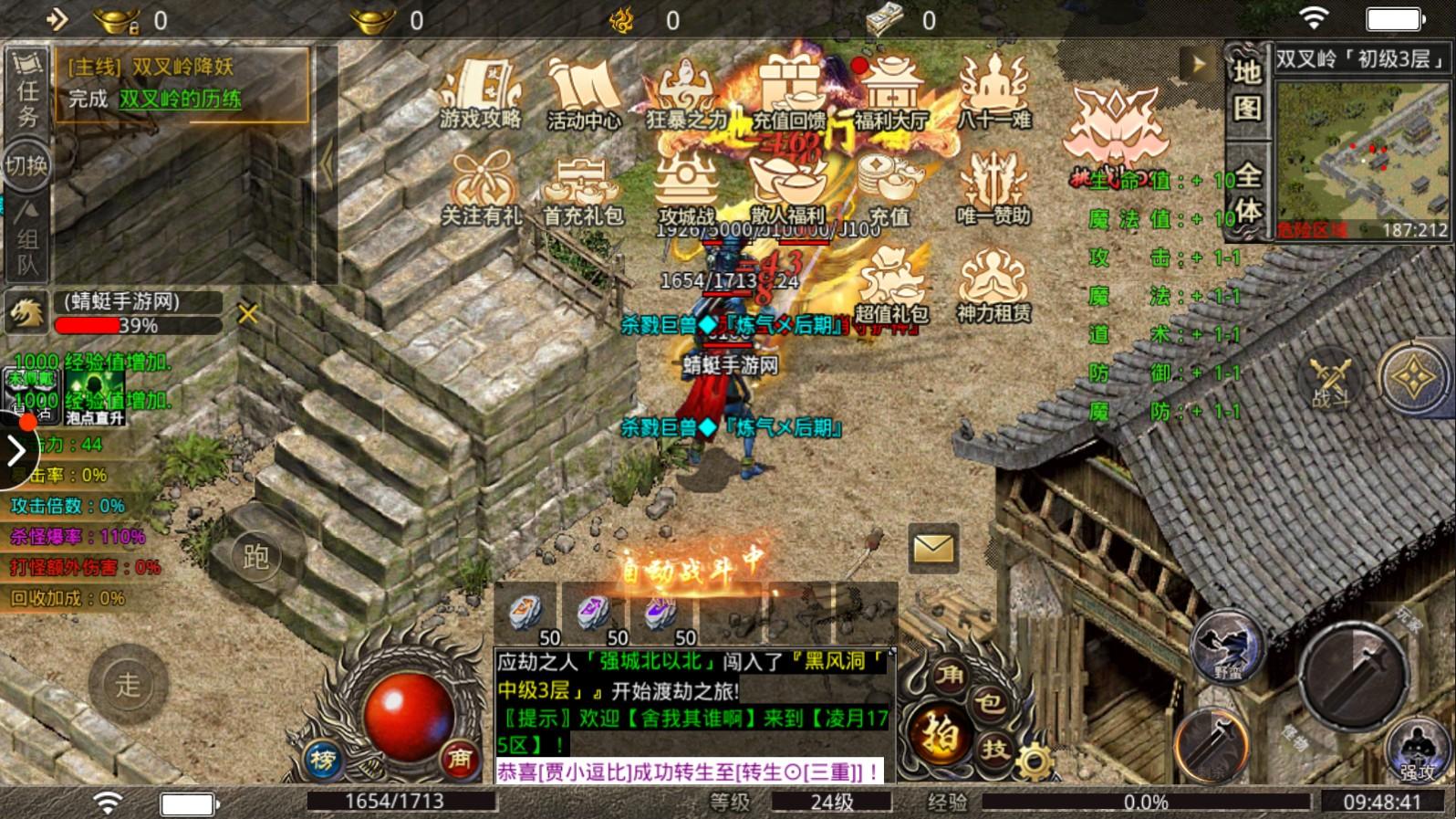 1.角色养成.砍怪爆装,称号时装均可强化进阶,龙印合成,辅装合成升级。