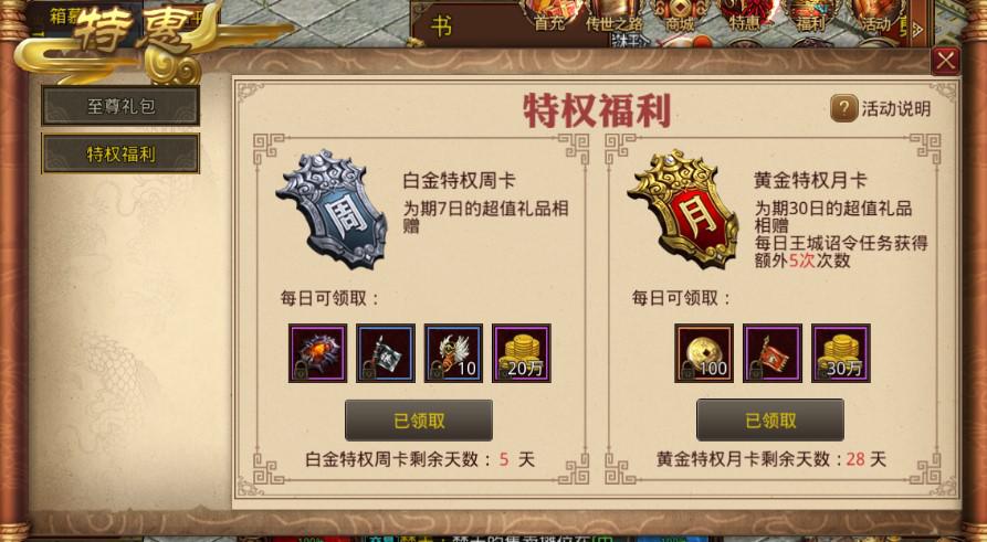 另外,悄悄的告诉大家一个小秘密,开通黄金特权月卡,不仅每天能够领取丰厚的月卡奖励,每日王城诏令的任务,还能够增加五次,保证让你在等级上,健步如飞,高人一等。