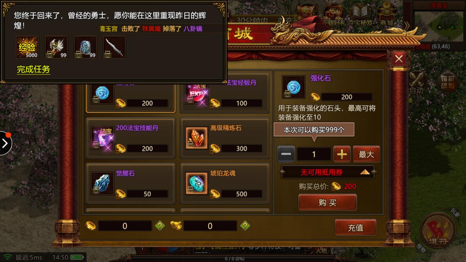 穿天法宝神器上线就送,还有强化.锻造.增幅系统助力玩家打造顶级装备;