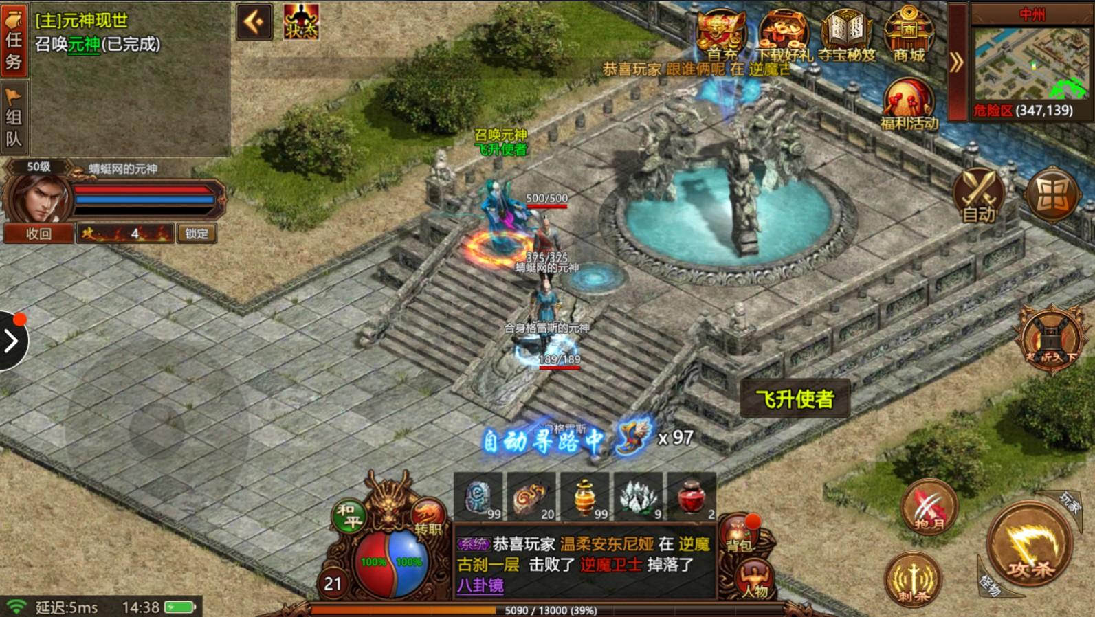 4、新增玩法:七星珠,收集中州大陆散落的七颗星珠集齐可以向中州神龙许愿,获得升级、元宝、经验、武器、衣服、四散等奖励,