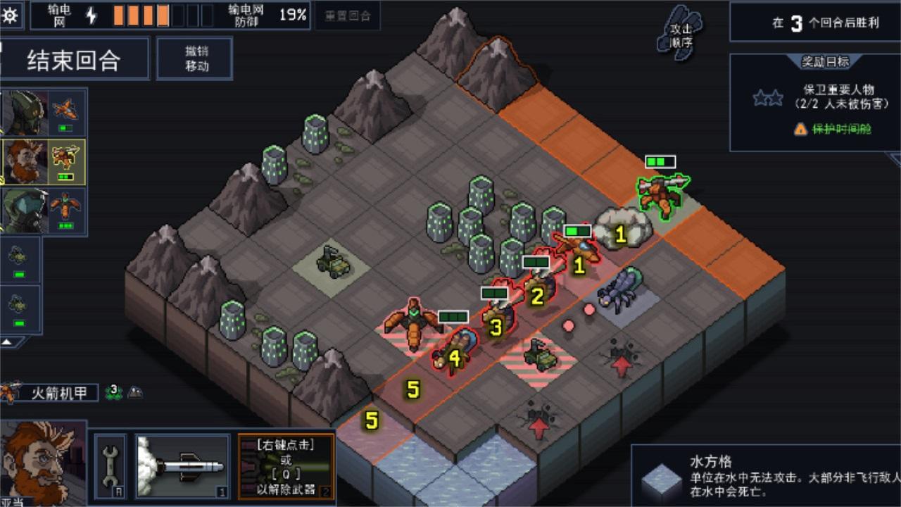 4、人类中的建筑可以为机甲提供能源,开火的时候一定要瞄准,不要伤到这些建筑。