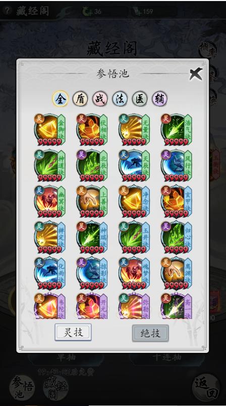 【医】主推:灵技-辰月仙诀(俗称无敌盾,仙雾通关必备),神通身法-带闪避属性