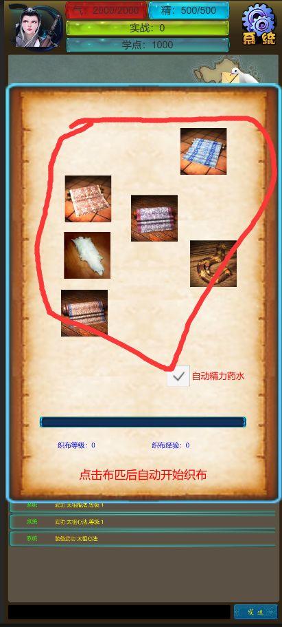 闯关过后,每天可以在打一次领取奖励,也可以用点数快速通过,接下来有了战斗也必须有生活技能,这里有采矿,伐木,织布